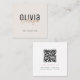 Make a bold yet elegant first impression with this modern square business card featuring a stylish font duo — a sleek sans serif paired with a delicate script overlay. The front showcases your name with a minimalist layout, while the back includes a scannable QR code for quick access to your website, portfolio, or social media. Perfect for entrepreneurs, creatives, and professionals looking to blend modern design with practical functionality. Easily personalize the text, QR code, and colors to match your brand identity.