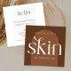 Minimal boho aesthetician or skin specialist business card with modern fonts and terracotta color scheme. The modern font design reads 'skin' and 'hello' and adds a really elegant feel to this bohemian calling card design, perfect for your beauty salon or skincare boutique. You can customize this dermatologist business card with your brand colors, logo and business details to make it your own.