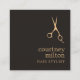 Modern customizable appointment card template with ivory black background and cool FAUX gold scissors icon.