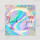 say big thank you and show your love and customer appreciation with this modern script card with the heart and holographic background, inviting them to purchase again, leave a review and tag you on social media. You can change the colors of the heart, text and icons to fit your branding