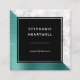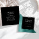 Modern, trendy design features simple white lettering in a black square, against a dramatic background of white marble and teal blue faux brushed metal foil. Add your contact information on the reverse in white sans serif font on a solid black background.