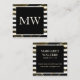 Carte De Visite Carré Monogramme moderne noir blanc rayures | Golden Pol