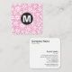 Carte De Visite Carré Monogramme rond - Fleurs - Rose #EF84B4