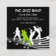 Cool jazz band pour la location modèle de carte de visite conçu sur des cartes de visite au format carré unique qui se remarquent et se rappellent avec des images de divers musiciens de jazz et un graphique de notes musicales dans le arrière - plan ainsi qu'une mise en page simple que vous pouvez customiser en ligne.