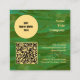 Ce carte de visite carré moderne en marbre vert et or est destiné aux professionnels et aux entrepreneurs. Le côté avant a un code QR personnalisable que vous pouvez remplacer par le vôtre. Il y a aussi un espace réservé au logo où vous pouvez ajouter un logo ou une photo de vous-même ou de votre entreprise. Il y a du texte dans pour votre nom, titre et société, plus e-mail, téléphone, poignée et adresse. À l'arrière se trouve un script élégant personnalisable pour ajouter un slogan ou un message personnalisé et ci-dessous, vous pouvez entrer votre adresse Web.