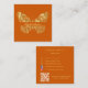 Carte De Visite Carré Papillon brûlé orange or code QR élégant script