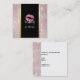 Un carte de visite avec un arrière - plan composé d'un motif feuille moderne et tendance en or tropical rose. Le dessus est recouvert d'un cadre noir avec une bordure dorée, à l'intérieur sont des lèvres de loterie rose. Maquillage écrit dans une police tendance. Personnalisez avec votre nom et vos détails d'affaires avant et arrière.