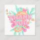 Script pastel fleuri de printemps commander merci voiture d'affaires carré. Avec une jolie illustration de fleurs gouache rose, rose, orange et un style rétro peint à la main, merci, les couleurs sont modifiables. sur arrière - plan blanc, ajoutez votre logo et les médias sociaux.