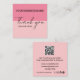 Remerciez vos clients avec ces cartes de visite en blocs de couleur rose pastèque doux “Merci pour votre commande” entièrement personnalisables. Assurez-vous d'ajouter votre propre URL de site Web au code QR au verso. Vous pouvez ajouter, supprimer et modifier tous les modèles de texte. Les icônes des réseaux sociaux peuvent être déplacées ou supprimées si vous le souhaitez.