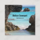 Cartes de visite avec une photo pittoresque montrant la côte tropicale des Bermudes. De gros rochers déchiquetés contrastent avec la mer turquoise et éclatante.