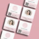 Carte De Visite Carré Pink Logo QR Code Photo Square Business Card
