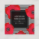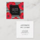 cartes de visite à fleurs carrés avec rayures noires et blanches chic et pavots rouges.