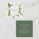 Les cartes de visite botaniques chics, au format carré unique, portent votre nom ou nom d'entreprise encerclé par une bordure ronde de feuilles botaniques peints en aquarelle dans des tons de vert riche. Ajoutez vos coordonnées complètes à l'arrière en blanc sur vert de forêt. Un choix unique et élégant pour fleuristes, designers floraux, design paysager ou toute entreprise avec un accent vert ou bien-être.