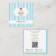 Carte De Visite Carré Preppy Brown & Blue Stripes Bakery Logo QR Code