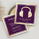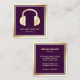 Carte De Visite Carré Purple Faux Gold Foil Headphones Music DJ