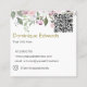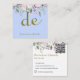 Une carte de visite simple et moderne très élégante, avec un arrière - plan à fleurs bleu clair. Convient pour les cosmétiques, la beauté ou toute entreprise moderne. Arrière - plan fleuri violet avec un texte couleur or sont la base de ce design moderne. Modifiez facilement les informations pour vous-même. Modifiez facilement le code QR pour votre propre code ou logo. Ou retirez complètement. De nombreux cartes de visite personnalisés de la gamme Fine Designs de Chessie.