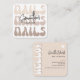 Artiste ou technicien moderne carte de visite avec polices rétro et arrière - plan beige. Le design rétro des polices de caractères dit "clous" et "bonjour" et ajoute une touche très tendance à ce design élégant de carte de visite, parfait pour votre salon d'ongles. Vous pouvez customiser ce carte de visite de clous avec vos couleurs, logo et détails d'entreprise pour en faire votre propre.