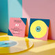 Carte De Visite Carré Retro bleu jaune moderne musique dj vinyle musicie