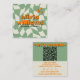 Carte De Visite Carré Retro Green Orange QR Code Groovy Checkered Boho
