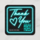 Carte De Visite Carré Retro Neon Turquoise Signal lumineux Merci client