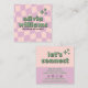 Carte De Visite Carré Retro Pink Green Pastel Groovy Checkered Girly Fun
