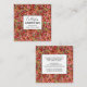 Carte De Visite Carré Rouge Golden Jaune Vert Aquarelle Fleurs Motif