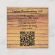 Cette façade carte de visite présente une lame de scie circulaire rustique sur un arrière - plan en bois coupé et le dos contient des détails d'affaires. Personnalisez le modèle, supprimez le texte ou modifiez-le à l'aide de l'outil de conception pour sélectionner un style, une taille et une couleur de police. L'arrière comprend une conception coordonnée avec des champs de texte pour le nom commercial et les détails ainsi que l'espace réservé au code QR. Remplacez le code QR de l'espace réservé par le vôtre. Utilisez le lien de code QR pour envoyer des clients sur votre site Web, des photos, des recommandations/commentaires ou d'autres sites. Ce design carte de visite peut bien fonctionner pour la restauration du bois, le menuisier, les travaux de construction ou peut-être votre entreprise.
