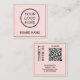 Carte De Visite Carré Scannable QR Code Modern Blush Pink Black Digital