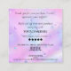 dites grand merci et montrez votre amour et l'appréciation de vos clients avec cette carte script moderne avec coeur et iridescent arrière - plan opal, les invitant à acheter à nouveau, laisser un commentaire et vous étiqueter sur les médias sociaux. Vous pouvez modifier les couleurs du coeur, du texte et des icônes pour adapter votre marque