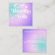 Cool tendance violet turquoise dégradé holographique retro script commander merci carte de visite carré. les couleurs sont modifiables. ajoutez votre logo et les médias sociaux.