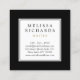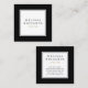 Un design simple mais classique sur ce modèle de carte de visite carré. Votre nom ou nom d'entreprise est élégamment stylisé dans une boîte blanche encadrée sur un arrière - plan noir. Cette carte de carré recto verso offre une grande place pour vos coordonnées à l'arrière. Conception par 1201AM Design Studio | www.1201am.com