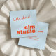 This square business card features "hello there!" in a fun handwritten script at the top, with your business name in big bold orange letters below on a soft blue background. The back has your full contact details in the same orange type. It's a warm, friendly card that works especially well for anyone in a people-first business — a photographer, coach, yoga instructor, or creative who wants clients to feel comfortable right from the start. The square format makes it stand out, and the greeting does the rest.