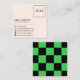 Un modèle de carte de visite professionnelle et créative comprend votre logo et vos coordonnées. Simple motif moderne design en damier noir et vert sur le dos. L'arrière - plan de couleur pastel sur l'avant peut être changé en n'importe quelle couleur, y compris le blanc, déplacer et redimensionner les éléments avec l'outil de personnalisation. Pour obtenir des documents marketing correspondants supplémentaires, envoyez-moi un courriel à themarisuvalencia@gmail.com ou envoyez-moi un message via Zazzle conversation. Design original par Marisu Valencia.