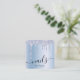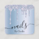 Design carte de visite moderne de clous avec des gouttes en faux parties scintillant bleu et une police de calligraphie élégante.