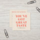 Petite entreprise Vous avez un grand goût merci carte de visite carré. Customisez le texte, les couleurs, les polices à vos souhaits.