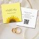 Code QR carte de visite moderne tournesol, avec une image fleurie jaune et un design élégant de typographie. Le dos de la carte a un arrière - plan blanc, des lettres personnalisables en noir et un code QR pour votre site Web. Idéal pour avoir le mot notre sur votre entreprise wedding planner.