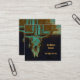 Western turquoise brun or vintage grunge crâne de taureau rustique. Cowboy crâne de vache pays vieux cartes de visite carrés personnalisés. Design antique d'inspiration occidentale sauvage. Cool, animal de ferme branché. Copyright de l'image Marg Seregelyi Photography.