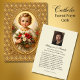 Catholic memorial, funeral remembrance, prayer for the faithful departed, offering a quiet act of charity for the soul. This traditional devotional image pairs the Holy Child Jesus, haloed in gentle light and framed in antique gold, with a reverent prayer entrusted to the mercy of God. Suitable for funerals, memorial Masses, and ongoing intercession for loved ones who have gone before us marked with the sign of faith. A timeless keepsake meant to be held, prayed, and returned to often, commending the departed to the Blessed Virgin Mary and the communion of Saints. Frameable image, perfect for displaying as a cherished keepsake of this sacred occasion.