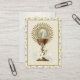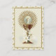 Avec une belle image customisée du Seigneur ressuscité, Jésus dans l'Eucharistie avec un calice et un lis blanc en dessous Le dos a une belle prière et hymne catholique traditionnelle, "O sacrement Très Saint".
