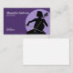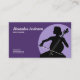 A business card for a cello teacher or a cellist. It comes with a woman holding a cello, all in purple tones.