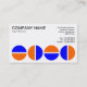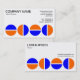 Modèle de carte de visite avec un motif de cercles géométriques tournants attrayant où chaque cercle est pivoté de 90 degrés à celui qui l'précède. Nom de l'entreprise, Type d'entreprise/devis, ainsi que les coordonnées de l'adresse et du téléphone sur le devant, avec nom, titre, e-mail et détails du web au verso. Toutefois, la conception peut être customisée de diverses façons.