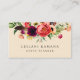 Les fleurs, les plumes et le feuillage de Bohème de style d'aquarelle élégante aux nuances chics du pourpre, du Bourgogne, du rose, de la pêche et du vert avec des accents géométriques d'or soutiennent dessus, des cartes de visite. La couleur d'arrière - plan, montrée en champagne, peut être customisée.