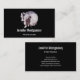 Cartes de visite avec une aquarelle représentant un chat noir et un bouquet floral violet clair et rose. Devant une grande lune. Design et magique.