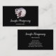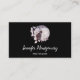 Cartes de visite avec une aquarelle représentant un chat noir et un bouquet floral violet clair et rose. Devant une grande lune. Design et magique.