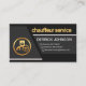 En haut de la carte se trouve le slogan "service de chauffeur" que vous pouvez éditer la légende pour répondre à vos besoins de service. En dessous du slogan se trouve votre nom prestigieux avec les coordonnées dans leurs boutons gris respectifs. A gauche, se trouve un faux logo de chauffeur en or que vous pouvez utiliser.