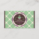 Carte De Visite Chef de cupcake géométrique vert marron