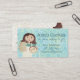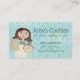 Brunette fille ou femme boulangère ou pâtissière carte de visite avec une mignonne femme aux cheveux longs tenant un sac de farine et un bol de mélange, personnalisé avec votre choix de couleur arrière - plan.
