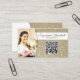 Un faux éclat doré subtil rehausse l'arrière-plan de ce modèle de carte de visite comportant un espace réservé pour une photo à gauche avec le nom du modèle et un code QR à droite. Le verso comprend un design coordonné et des couleurs avec des champs de texte pour le nom de l'entreprise et les détails. Conservez ou remplacez la photo de remplacement par votre photographie au format vertical et remplacez le code QR par le vôtre. Remplissez les champs du modèle ou cliquez sur personnaliser pour sélectionner un style de police, une taille et une couleur de votre choix. La photo de remplacement est fournie par pexels.com.