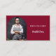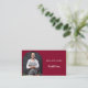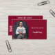 Un arrière - plan bordeaux. Personnalisez et ajoutez votre titre, nom/nom commercial et texte à l'avant. Texte blanc. Un cadre photo en arc. Retour : Modèles pour Votre nom, titre, numéro de téléphone, adresse postale et de site, votre propre code QR à votre site Web ou compte de médias sociaux. Image Facebook et Instagram/compte.
