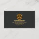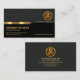 Une couche grise et noire rétro est délimitée par une fausse bande dorée près de la face gauche de la carte. En haut, un logo de chef en or que vous pouvez utiliser, son contact par e-mail est directement en dessous. Sous la bande d'or se trouvent votre nom prestigieux, votre titre de poste et les coordonnées. A l'opposé, vous trouverez un slogan pour faire connaître vos services.